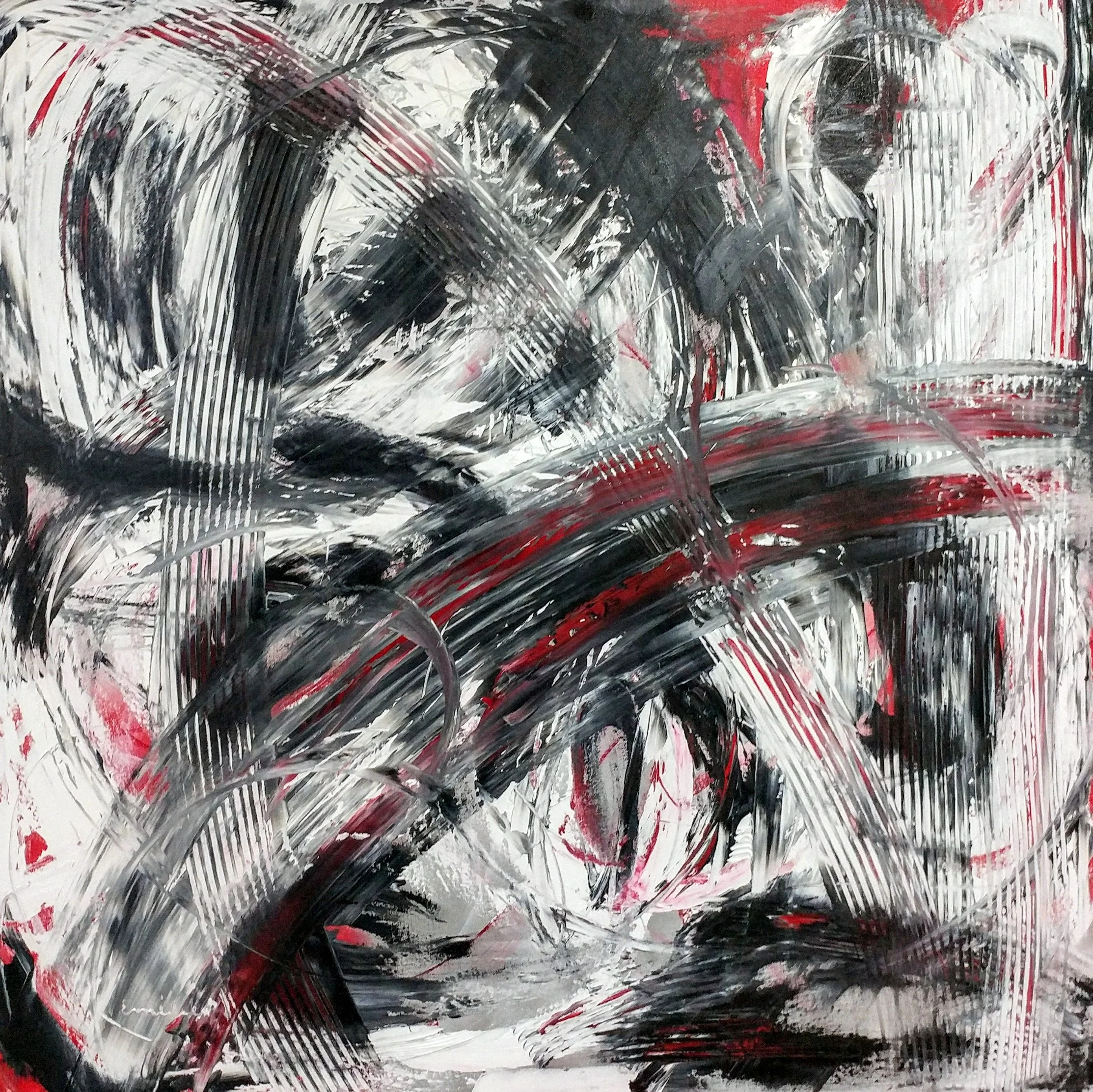 Emilie Beadle's work is very much an expression of her "innermost thoughts and feelings". Through the painting process, she is able to express what she feels that using words would only diminish. This work is both very intentional and also created with unplanned intuition.
